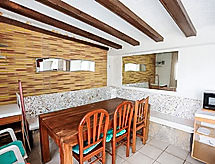 Vrlo velika vila "Maria Cristina", prikladna za djecu, zasebna. 2 kuće u residenceu. Objekat se sastoji od glavne i sporedne zgrade, u samom mjestu 500 m od centra mjesta Miami Platja, 1 km od mora, 1 km od plaže. Za samostalno korištenje: veliki, lijepi, njegovani vrt 1'500 m2 (ograđen) - travnjak 500 m2, bazen pravokutni (12 x 8 m, 80- 190 cm dubok, sezonska dostupnost: 01.Apr. - 31.Oct.). Tuš/WC uz bazen, kućica uz bazen s hladnjakom i štednjakom, roštilj. Bazen održava vlasnik/vrtlar. U kući: klimatizacija, perilica za rublje. Parking na parceli. Trgovina, trgovina živežnim namirnicama, supermarket, restoran, pekara 500 m. Tenis 1 km. U blizini: Parque Portaventura 28 km, parque acuático Aquopolis 31 km, parque Natural del Delta del Ebro 53 km, Tarragona 37 km, Reus 30 km, Barcelona 132 km. Grupe mladih samo na upit.Interior