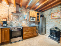 "Maria (LOM120)", 4 -sobna kuća 80 m2 na 2 etaže. Svrsishodno i romantično uređena: dnevni boravak/blagovaona s otvorenim kaminom, stolom za blagovanje, TV-om sa sat. prijemnikom, el. peći i ventilatorom. 1 soba, bez prozora s 2 kreveta, el. grijanjem i ventilatorom. Otvorena kuhinja (pećnica, 3 plamena za kuhanje, toster, kuhalo za vodu, mikrovalna pećnica, zamrzivač, el. aparat za kavu). Tuš/WC. El. grijanje. Gornji kat: prolazna soba s 2 kreveta, el. peći i ventilatorom. 1 soba s 2 kreveta, el. peći i ventilatorom. Tuš/WC. El. grijanje. Garnitura za sjedenje, vrtni roštilj (prijenosni), lođa. Na raspolaganju: visoka dječja stolica, dječji krevetić. Najviše 1 kućni ljubimac / pas dozvoljen. RE/1491- postrojenja