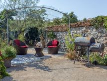 "Maria (MLK171)", 2 -sobna kuća 38 m2 na 2 etaže. Rustikalno i udobno uređena: dnevni boravak/blagovaona s TV-om sa sat. prijemnikom i el. peći. Izlaz na terasu. Otvorena kuhinja (2 Indukcione ploče, zamrzivač, el. aparat za kavu). Tuš/WC. Klima uređaj. Gornji kat: 1 otvorena soba s kosim stropom s 1 franc. krevetom (150 cm, dužina 200 cm), klima uređajem. Grijanje toplim zrakom. Drveni pod. Terasa 20 m2 (djelomično natkrita). Garnitura za sjedenje, vrtni roštilj (prijenosni). Na raspolaganju: visoka dječja stolica, dječji krevetić. Internet (wireless LAN [WLAN], besplatan). Parking (2 automobila). Dodatna informacija: apartman za nepušače. Najviše 2 kućna ljubimca / psa dozvoljena.- postrojenja