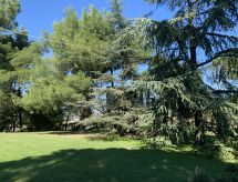 6 -sobna kuća 200 m2 na 2 etaže. Svrsishodno i rustikalno uređena: predsoblje s otvorenim kaminom. Izlaz u vrt. Veliki dnevni boravak/blagovaona 50 m2 s otvorenim kaminom i TV-om. Izlaz u vrt. Kuhinja/dn. boravak (4 ploče za kuhanje, pećnica, perilica za suđe, zamrzivač) s otvorenim kaminom. Izlaz u vrt. Tuš/bidet/WC. Gornji kat: 2 bračne sobe. 2 sobe, svaka soba s 2 kreveta. Kada/bidet/WC. Bez grijanja. Lijep panoramski pogled na vrt i krajolik. Na raspolaganju: perilica za rublje, visoka dječja stolica, dječji krevetić do 2 godine. Internet (wireless LAN [WLAN], uz doplatu). Parking (ograđen) uz kuću. Najviše 1 kućni ljubimac / pas dozvoljen. Posteljina, ručnici, završno čišćenje i troškovi energije su uključeni u cijenu. Na licu mjesta nema naplate dodatnih troškova.- Značajke smještaja