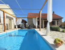 Bogatić 10 km od mjesta Oklaj: Lijepa obiteljska kuća "Marija", prikladna za djecu na 2 kata. Mirno, sunčano mjesto, 44 km od mora. Za samostalno korištenje: parcela 700 m2 (ograđena), bazen pravokutni (6 x 3 m, 18 m2, 150 cm dubok, sezonska dostupnost: 15.Apr. - 15.Oct.). Vanjski tuš, boćalište, badminton, igralište za odbojku, terasa (6 m2), vrtna garnitura za sjedenje, roštilj, dječje igralište (tobogan, ljuljačka). U kući: pristup internetu, sauna, biljar, perilica za rublje. Na raspolaganju: bicikle (2), dječje bicikle (1). Prilaz autom do kuće (800 m bijela cesta). Parking (za 2 automobila) uz kuću na parceli. Trgovina 10 km, restoran 6 km, šljunčana plaža 44 km. U blizini: NP Krka 6 km. Grupe mladih samo na upit. Grupe mladih polažu pri dolasku dvostruki depozit. Organiziranje zabave nije dozvoljeno. Mala kućica (15 m2) pored bazena sa saunom i klima uređajem.Interior
