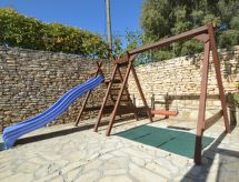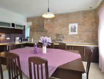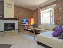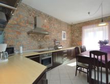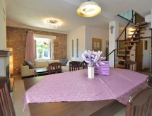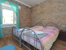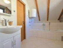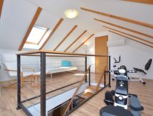 4 -sobna kuća 110 m2 na 2 etaže, prema jugu. Dnevni boravak/blagovaona s 1 kaučem za 1 osobu (90 cm, dužina 220 cm), otvorenim kaminom i TV-om sa sat. prijemnikom (plosnatim TV ekranom), klima uređajem. 1 soba s 1 franc. krevetom (180 cm, dužina 190 cm). 1 soba s 2 kreveta (90 cm, dužina 180 cm). Otvorena kuhinja (pećnica, perilica za suđe, 4 staklokeramičke ploče za kuhanje, mikrovalna pećnica, el. aparat za kavu). Tuš/WC. Gornji kat: otvorena galerija s kosim stropom, visina stropa 110 - 230 cm s 1 kaučem za 1 osobu (110 cm, dužina 190 cm), TV-om sa sat. prijemnikom (plosnatim TV ekranom), klima uređajem. 1 soba s kosim stropom, visina stropa 110 - 230 cm s 2 kreveta (90 cm, dužina 190 cm). Izlaz na balkon. Kada/WC. Grijanje na drva. Balkon 3 m2, terasa 15 m2 (natkrita). Balkonski namještaj, ležaljke. Pogled na krajolik. Na raspolaganju: sef, dječji krevetić, drvo (uklj.). Internet (wireless LAN [WLAN], besplatan).- Aktivnosti u blizini