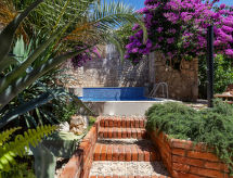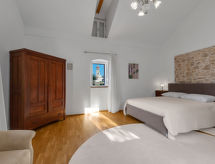 3 -sobna kuća 165 m2 na 2 etaže. Dnevno-spavaća soba 22 m2 s 2 kauča za 1 osobu (80 cm, dužina 200 cm), TV-om sa sat. prijemnikom i ventilatorom. Izlaz u vrt, na terasu. Kuhinja (4 ploče za kuhanje, pećnica, perilica za suđe, zamrzivač, el. aparat za kavu) s stolom za blagovanje. Izlaz na terasu. Kada/bidet/WC s kutnom kadom. Gornji kat: 1 soba 20 m2 s 1 franc. krevetom (160 cm, dužina 190 cm), klima uređajem. 1 soba s 1 franc. krevetom (160 cm, dužina 190 cm), klima uređajem. Izlaz na terasu. Tuš/WC. Podno grijanje. Terasa 15 m2. Garnitura za sjedenje. Djelomičan pogled u daljini na more. Na raspolaganju: Internet (wireless LAN [WLAN], besplatan). Parking (ograđen).- Aktivnosti u blizini