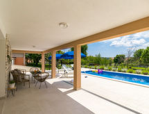 Obiteljska kuća "Marina (LBN411)", na 2 kata, godina izgradnje 2018. U četvrti Vinež 1 km od centra mjesta Labin, 6 km od centra mjesta Rabac, u jednoj četvrti za stanovanje, 6 km od mora. Za samostalno korištenje: parcela 3'000 m2 - travnjak i drveće, bazen (8 x 4 m, 135 cm dubok, sezonska dostupnost: 01.May. - 01.Oct.) s unutarnjim stepenicama. Vanjski tuš, terasa, vrtna garnitura za sjedenje, roštilj. Bazen održava vlasnik/vrtlar. U kući: pristup internetu, trampolin, perilica za rublje. Prilaz autom do kuće (30 m bijela cesta). Parking (za 3 automobila) na parceli. Trgovina 200 m, supermarket 1 km, šljunčana plaža 6 km. Grupe mladih samo na upit.Interior