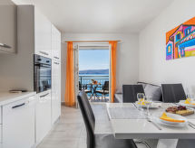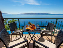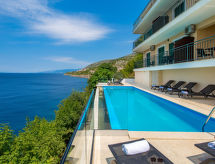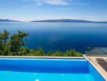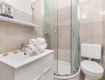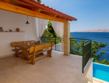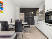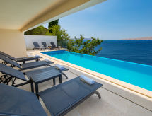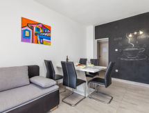 Kuća s više apartmana "Marina". 1.2 km od centra mjesta Senj, 13 km od centra mjesta Klenovica, 20 km od centra mjesta Novi Vinodolski, 50 m od mora, 50 m od plaže. Za zajedničko korištenje: parcela 600 m2, bazen (10 x 3 m, 150 cm dubok, sezonska dostupnost: 15.Mar. - 15.Nov.). Vanjski tuš, terasa, vrtna garnitura za sjedenje, roštilj. U kući: pristup internetu, perilica za rublje (za zajedničko korištenje, uz doplatu). Prilaz autom do kuće (100 m bijela cesta). Parking uz kuću. Trgovina 700 m, restoran 400 m, šljunčana plaža 300 m, stjenovita plaža 50 m. Psi, na stjenovitoj plaži ispod kuće za odmor, nisu dozvoljeni.Interior