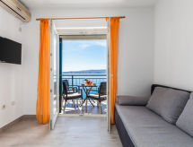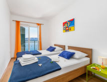 "Marina (SNJ107)", 3 -sobni apartman 53 m2, u prizemlju. Renoviran godine 2019: dnevni boravak/blagovaona s 1 kaučem za 1 osobu, TV-om sa sat. prijemnikom i klima uređajem. Izlaz na balkon. 1 soba s 1 franc. krevetom (160 cm, dužina 200 cm), TV-om sa sat. prijemnikom i klima uređajem. Izlaz na balkon. 1 soba s 2 kreveta (90 cm, dužina 200 cm). Izlaz na balkon. Otvorena kuhinja (pećnica, perilica za suđe, 4 Indukcione ploče, toster, mikrovalna pećnica, zamrzivač, el. aparat za kavu). 2 x tuš/WC. Balkon. Balkonski namještaj. Pogled na more. Na raspolaganju: Internet (wireless LAN [WLAN], besplatan). Dodatna informacija: kuća za nepušače. Najviše 1 kućni ljubimac / pas dozvoljen.- postrojenja
