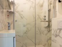 Residence "Marina Soleil Bleu", na 3 kata. U četvrti Coudalère, 5 km od centra mjesta Barcarès, 2.5 km od mora, 300 m od jezera, 2.5 km od plaže. U kući: spremište za bicikle. Parking. Trgovina, trgovina živežnim namirnicama, supermarket, restoran, bar, pekara, cafe 200 m, željeznička postaja "La Franqui" 20 km, pješčana plaža 3 km, nudistička plaža 8 km. Sportska lučica 6 km, tenis, minigolf 800 m. U blizini: Aqualand Port Leucate 5 km, Réserve Africaine de Sigean 41 km, Fort de Salses 20 km, Narbonne 55 km, Perpignan 25 km, Barcelone 215 km. Poznata jezera u blizini: Etang de Leucate ou Salses 7 km, Lac de Villeneuve de La Raho 28 km. Pješačke staze: Sentier du guetteur 8 km, Station meteorologique de Opoul Perillos 25 km, Sentier du littoral Collioure 40 km.Interior