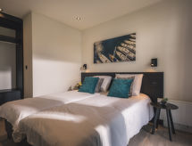 "Villa Maritiem", 3 -sobna kuća 55 m2. Komforno uređena: predsoblje. Dnevni boravak/blagovaona s stolom za blagovanje i plosnatim TV ekranom. Izlaz na terasu. 2 bračne sobe, svaka soba s 2 kreveta i plosnatim TV ekranom. Otvorena kuhinja (4 ploče za kuhanje, perilica za suđe, kuhalo za vodu, el. aparat za kavu, Doze za mašinu za kavu (Nespresso) uz doplatu, kombinirana mikrovalna pećnica). Tuš/WC, duplim umivaonikom. El. grijanje. Terasa. Garnitura za sjedenje, ostava. Na raspolaganju: Internet (wireless LAN [WLAN], besplatan). Parking (1 automobil). Dodatna informacija: kuća za nepušače. Protupožarni alarm.- postrojenja