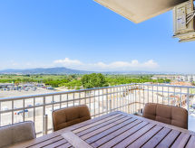 "Maritimo", 4 -sobni apartman 97 m2 na 5. katu. Svrsishodno i komforno uređen: dnevni boravak/blagovaona s digitalnim TV, plosnatim TV ekranom, klima uređajem i grijanjem na topli zrak. Izlaz na terasu. 1 soba s 1 franc. krevetom (160 cm, dužina 200 cm). 2 sobe, svaka soba s 1 krevetom na izvlačenje (2 x 90 cm, dužina 190 cm). Kuhinja (4 ploče za kuhanje, pećnica, mikrovalna pećnica, zamrzivač). Tuš/bidet/WC. Terasa 12 m2. Garnitura za sjedenje. Pogled na mjesto. Na raspolaganju: perilica za rublje, glačalo, sušilo za kosu. Internet (wireless LAN [WLAN], besplatan). R000000001- postrojenja