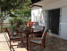 "Martinis (TGR163)", 3 -sobni apartman 42 m2 na 1. katu. Dnevni boravak/blagovaona s otvorenim kaminom (samo za dekoraciju), TV-om sa sat. prijemnikom i klima uređajem. Izlaz na terasu. 1 soba, bez ormara s 2 kreveta. 1 soba s 1 bračnim krevetom. Otvorena kuhinja (4 ploče za kuhanje, pećnica, toster, kuhalo za vodu, mikrovalna pećnica, zamrzivač, el. aparat za kavu). Tuš/WC. Terasa. Garnitura za sjedenje, ležaljke (2). Pogled na more. Na raspolaganju: Internet (wireless LAN [WLAN], besplatan).- postrojenja