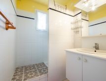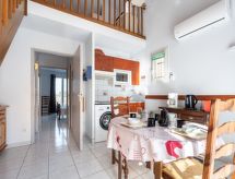 Residence "Mas de l'Ile". U četvrti Le Lido, 300 m od mora, 250 m od plaže. Trgovina živežnim namirnicama, restoran, najam bicikli 300 m, željeznička postaja "Perpignan" 25 km. Tenis 4 km, minigolf 4 km. U blizini: Aqualand Port Leucate 6 km, Réserve Africaine de Sigean 41 km, site des dosses 4 km, téléski nautique 5 km. Poznata jezera u blizini: Etang de Leucate ou salses 11 km, Lac de Villeneuve de la Raho 28 km. Pješačke staze: Sentier du guetteur 8 km, la forteresse de salses 15 km, Sentier du littoral Collioure 40 km.Interior