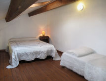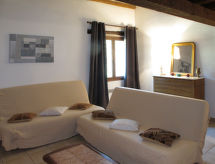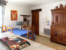 "Mas du Combaud (RSA171)", 2 -sobni apartman 100 m2 na 2 etaže na 1. katu. Objekt pogodan za 4 odraslih. Svrsishodno i antikno uređen: dnevno-spavaća soba s 1 kaučem za 2 osobe i TV-om. 1 soba s 1 franc. krevetom i tušem/WC-om. Kuhinja (pećnica, perilica za suđe, 4 staklokeramičke ploče za kuhanje, mikrovalna pećnica, zamrzivač, el. aparat za kavu) s stolom za blagovanje. Tuš, odv. WC. Gornji kat: s kosim stropom, otvorena galerija s 1 franc. krevetom. El. grijanje. Parketni pod. Terasa (natkrita). Garnitura za sjedenje. Pogled na vrt. Na raspolaganju: perilica za rublje. Internet (wireless LAN [WLAN], besplatan). Dodatna informacija: apartman za nepušače. Protupožarni alarm. 83100700043280- postrojenja