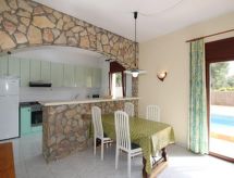 Rustikalna, komforna kuća u nizu "Mas Tomasi 4V". 2 kuće u residenceu. U četvrti Mas Tomasi, mirno, sunčano mjesto, 100 m od ruba šume, 5 km od mora. Za samostalno korištenje: terasasti vrt, bazen (8 x 4 m, 150- 200 cm dubok, sezonska dostupnost: 14.May. - 14.Oct.). Parking uz kuću. Supermarket 1.5 km, pješčana plaža "Platja del Raco" 5 km šljunčana plaža "Platja de sa Riera" 6 km. Golf teren (18 rupa) 4.6 km. U blizini: Illes Medes 15 km, Parc Aventura 3.6 km, Karting regencos 5 km, Hipica begur 6 km. Dodatna informacija: dio kuće je zatvoren i ne koristi se. Mogućnost rezerviranja dodatnih smještajnih jedinica. Objekt ref.br. es9435.908.1 je smješten na istoj parceli.Interior