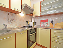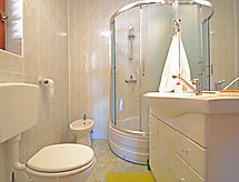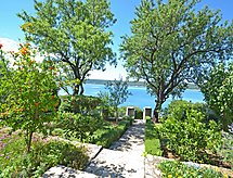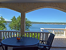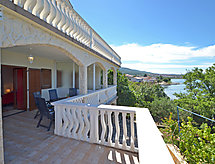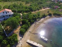 2 -sobni apartman 50 m2 na 1. katu, prema jugozapadu. Dnevno-spavaća soba s 1 bračnim krevetom (2 x 90 cm, dužina 200 cm), TV-om sa sat. prijemnikom (plosnatim TV ekranom), klima uređajem. Izlaz na terasu. 1 soba s 1 krevetom (90 cm, dužina 200 cm), 1 x 2 kreveta na kat (90 cm, dužina 200 cm), ventilatorom. Kuhinja (4 ploče za kuhanje, pećnica, mikrovalna pećnica, zamrzivač, el. aparat za kavu) s stolom za blagovanje. Tuš/bidet/WC. Terasa 25 m2 (natkrita). Garnitura za sjedenje. Lijep pogled na more. Na raspolaganju: perilica za rublje.- postrojenja