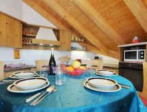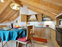 4 -sobni apartman 90 m2, u potkrovlju. Svijetlo, djelomično spušten strop, lijepo i s puno drva uređen: dnevni boravak/blagovaona s kutom za blagovanje i TV-om sa sat. prijemnikom. Izlaz na balkon. 1 soba s 2 kreveta. 1 soba s 1 x 2 kreveta na kat. 1 bračna soba. Izlaz na balkon. Otvorena kuhinja (pećnica, perilica za suđe, 4 staklokeramičke ploče za kuhanje, kuhalo za vodu, mikrovalna pećnica, zamrzivač, el. aparat za kavu). Kada/bidet/WC, tuš/bidet/WC. Grijanje. 2 balkona. Ležaljke, ostava. Lijep pogled na planine i skijašku stazu. Na raspolaganju: perilica za rublje, visoka dječja stolica, dječji krevetić do 2 godine. Internet (wireless LAN [WLAN]). Dodatna informacija: apartman za nepušače. CIPAT: 022250-AT-055815- Značajke smještaja