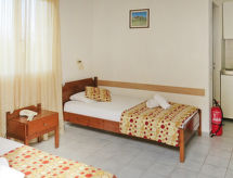 "Medusa Double", 1 -sobni studio 20 m2. Objekt pogodan za 2 odraslih. Komforno i lijepo uređen: otvorena dnevno-spavaća soba s 2 kreveta i TV-om sa sat. prijemnikom (plosnatim TV ekranom). Otvorena kuhinja (2 ploče za kuhanje, el. aparat za kavu) s stolom za blagovanje. Tuš/WC, hidromasažnim tušem. Klima uređaj. Balkon ili terasa. Lijep pogled na more i bazen. Na raspolaganju: sef, sušilo za kosu. Internet (wireless LAN [WLAN], besplatan). Dodatna informacija: kuća za nepušače. 1039K031A0183500- Značajke smještaja