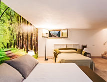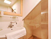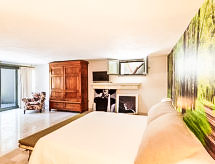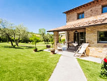 "Meletta", 4 -sobna vila 120 m2 na 3 etaže. Prostrano, vrlo komforno i ukusno uređena: veliki dnevni boravak/blagovaona 37 m2 s TV-om sa sat. prijemnikom i plosnatim TV ekranom. Izlaz u vrt, na terasu. Mala kuhinja 8 m2 (5 pećnica, perilica za suđe, mikrovalna pećnica, zamrzivač, el. aparat za kavu). Izlaz na terasu. Odv. WC. Grijanje na drva. Donji kat: 1 velika soba s 1 kaučem za 2 osobe i 1 bračnim krevetom. Tuš/WC. Gornji kat: 1 bračna soba 14 m2 s tušem/bidetom/WC-om. 1 bračna soba 12 m2. Tuš/bidet/WC. Garnitura za sjedenje, vrtni roštilj. Pogled na krajolik. Na raspolaganju: perilica za rublje, visoka dječja stolica. Internet (wireless LAN [WLAN], besplatan). Prikladno za obitelji. 1 mali kućni ljubimac / pas dozvoljen.- postrojenja