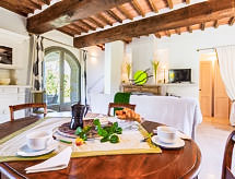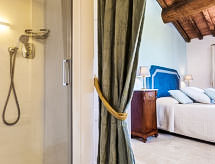 Vrlo lijepa, luksuzna vila "Meletta", godina izgradnje 2015. 3 km od centra mjesta Gambassi Terme, 19 km od centra mjesta San Gimignano, 32 km od centra mjesta Volterra, mirno mjesto. Za samostalno korištenje: mali vrt 1'000 m2 (ograđen), bazen (5 x 11 m, 150- 150 cm dubok, sezonska dostupnost: 01.May. - 30.Sep.) s čišćenje bazena elektrolizom soli. U kući: perilica za rublje, Grijanje se plaća u destinaciji (16.04. - 31.10.), grijanje na raspolaganju samo od 01.11. do 15.04.. Promjena posteljine - 1 puta tjedno (dodatno uz doplatu). Promjena ručnika - 1 puta tjedno (dodatno uz doplatu). Prilaz autom do kuće (150 m bijela cesta). Parking uz kuću na 30 m. Trgovina 2 km, restoran 3 km. Golf teren (18 rupa) 20 km. U blizini: Certaldo 8 km, Monteriggioni 11 km, Barberino Val D'elsa 26 km, San Donato in poggio 36 km, Siena 55 km, Firenze 59 km. Dodatna informacija: preporučljiv vlastiti prijevoz.Interior
