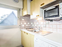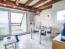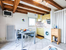 Mali residence "MEN DU". Na rubu mjesta, 1.8 km od centra mjesta Carnac, 100 m od mora, 100 m od plaže, prijeći cestu. U kući: spremište za bicikle. Trgovina 800 m, trgovina živežnim namirnicama, supermarket 500 m, restoran 800 m, pješčana plaža "Beaumer - Mendu" 100 m. Golf teren (18 rupa) 15 km, škola jedrenja na dasci 1.7 km, škola jedrenja 2 km. U blizini: La Trinité sur Mer 2.7 km, Thalasso 2.8 km, Alignements de Carnac 4.1 km, Auray 15 km, Vannes 34 km.Interior