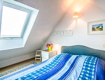 2 -sobni apartman 29 m2 na 2 etaže na 2. katu, prema jugoistoku. Dnevni boravak/blagovaona s 1 krevetom na izvlačenje (2 osobe), TV-om. Izlaz na balkon. Kuhinjska niša (2 ploče za kuhanje, pećnica, mikrovalna pećnica). Kada/WC. Gornji kat: 1 soba s kosim stropom s 1 franc. krevetom (140 cm). Balkon 5 m2. Balkonski namještaj. Lijep pogled na more. Na raspolaganju: perilica za rublje, sušilo za kosu. Internet (wireless LAN [WLAN], uz doplatu). Parking br. 14. Dodatna informacija: TV samo FR. Protupožarni alarm.- Značajke smještaja