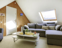 3 -sobni apartman na 2 nivoa 55 m2 na 1. katu. Objekt pogodan za 2 odraslih + 2 djece. Svrsishodno i lijepo uređen: blagovaona. Izlaz na balkon. 1 soba s 1 franc. krevetom (1 x 140 cm, dužina 190 cm). 1 soba s 1 x 2 kreveta na kat (90 cm, dužina 190 cm). Kuhinjska niša (2 ploče za kuhanje, perilica za suđe, mikrovalna pećnica, el. aparat za kavu). Tuš, odv. WC. Gornji kat: s kosim stropom, otvoreni salon s TV-om (plosnatim TV ekranom). El. grijanje. Mali balkon 6 m2. Balkonski namještaj. Na raspolaganju: Internet (wireless LAN [WLAN], uz doplatu). Parking br. 20. Dodatna informacija: apartman prema parkingu. Protupožarni alarm.- postrojenja