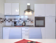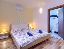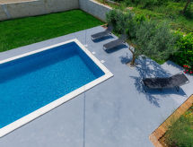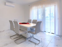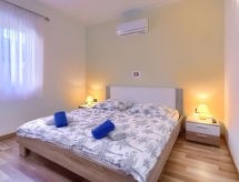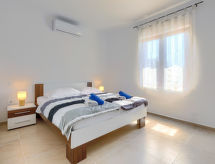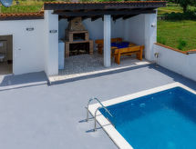6 -sobna kuća 180 m2 na 2 etaže. Dnevni boravak/blagovaona s TV-om sa sat. prijemnikom (plosnatim TV ekranom), klima uređajem. Izlaz na terasu. 1 soba s 1 franc. krevetom (180 cm, dužina 200 cm), TV-om sa sat. prijemnikom (plosnatim TV ekranom), klima uređajem. 1 soba s 1 franc. krevetom (180 cm, dužina 200 cm), tušem/WC-om i TV-om sa sat. prijemnikom (plosnatim TV ekranom), klima uređajem. Otvorena kuhinja (1 ploča za kuhanje, pećnica, perilica za suđe, 3 plamena za kuhanje, mikrovalna pećnica, zamrzivač, el. aparat za kavu). Tuš/WC. Gornji kat: (vanjske stepenice) dnevni boravak/blagovaona s TV-om sa sat. prijemnikom (plosnatim TV ekranom), klima uređajem. Izlaz na terasu. 1 soba s 1 franc. krevetom (180 cm, dužina 200 cm), TV-om sa sat. prijemnikom (plosnatim TV ekranom), klima uređajem. 1 soba s 1 franc. krevetom (180 cm, dužina 200 cm), tušem/WC-om i TV-om sa sat. prijemnikom (plosnatim TV ekranom), klima uređajem. Otvorena kuhinja (1 ploča za kuhanje, pećnica, perilica za suđe, 3 plamena za kuhanje, mikrovalna pećnica, zamrzivač, el. aparat za kavu). Tuš/WC. 2 terase 15 m2 (natkrite). Garnitura za sjedenje. Pogled na bazen. Na raspolaganju: visoka dječja stolica, dječji krevetić, sušilo za kosu. Internet (wireless LAN [WLAN], besplatan).- postrojenja