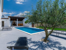 Kuća s 2 apartmana "Mia", na 2 kata. U zaseoku Režanci 6 km od centra mjesta Svetvinčenat, sunčano mjesto, 20 km od mora. Za samostalno korištenje: parcela 1'000 m2, mali vrt - bilje i cvijeće, bazen pravokutni (8 x 4 m, 140 cm dubok, sezonska dostupnost: 01.May. - 01.Oct.). Tuš/WC uz bazen, terasa (15 m2), vrtna garnitura za sjedenje. U kući: pristup internetu, perilica za rublje. Parking (za 2 automobila) uz kuću na parceli. Trgovina 150 m, restoran 6 km, šljunčana plaža 20 km. Pješačke staze od kuće 200 m, biciklistička staza 250 m.Interior