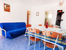 4 -sobni apartman 70 m2 na 2 etaže. Svijetlo, svrsishodno i komforno uređen: dnevno-spavaća soba s 1 kaučem za 2 osobe, stolom za blagovanje i TV-om. 1 soba s 1 krevetom. Kuhinja (4 ploče za kuhanje). Odv. WC. Gornji kat: 1 soba s 1 bračnim krevetom. 1 soba s 2 kreveta. Tuš/bidet/WC. Klima uređaj, grijanje toplim zrakom. 1 kućni ljubimac / pas dozvoljen.- Značajke smještaja