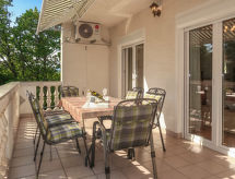 "Mila (JAD132)", 7 -sobna polovica dvojne kuće 160 m2 na 2 etaže. Dnevni boravak/blagovaona s 1 kaučem za 1 osobu, TV-om sa sat. prijemnikom i klima uređajem. Izlaz na terasu. 1 soba s 1 franc. krevetom (160 cm, dužina 200 cm). Izlaz na terasu. 2 sobe, svaka soba s 1 franc. krevetom (160 cm, dužina 200 cm). Otvorena kuhinja (4 ploče za kuhanje, pećnica, perilica za suđe, toster, kuhalo za vodu, mikrovalna pećnica, zamrzivač, el. aparat za kavu). 2 x tuš/WC. Gornji kat: (vanjske stepenice) dnevni boravak/blagovaona s 1 kaučem za 2 osobe (150 cm, dužina 200 cm), TV-om sa sat. prijemnikom i klima uređajem. Izlaz na balkon. 1 soba s 1 bračnim krevetom (2 x 80 cm, dužina 200 cm). 1 soba s 1 bračnim krevetom (2 x 80 cm, dužina 200 cm). Izlaz na balkon. Otvorena kuhinja (4 ploče za kuhanje, pećnica, perilica za suđe, toster, kuhalo za vodu, mikrovalna pećnica, zamrzivač, el. aparat za kavu). 2 x tuš/WC. Klima uređaj (uz doplatu). Balkon 20 m2, 2 terase 12 m2, 2 terase 25 m2. Garnitura za sjedenje, balkonski namještaj, vrtni roštilj, ležaljke. Na raspolaganju: perilica za rublje. Internet (wireless LAN [WLAN], besplatan). Dodatna informacija: kuća za nepušače. Najviše 2 kućna ljubimca / psa dozvoljena. Katovi nisu interno povezani.- postrojenja
