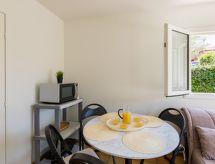 Residence "Milady Village". U četvrti Milady, u samom mjestu 3 km od centra mjesta Biarritz, 350 m od mora, 350 m od plaže. Za zajedničko korištenje: vrt (ograđen), bazen (7 x 5 m, sezonska dostupnost: 01.Jun. - 30.Sep.). Trgovina 2.5 km, trgovina živežnim namirnicama 1.2 km, supermarket 1.5 km, restoran 250 m, pekara 1.2 km, autobusna postaja "Cité de l'Océan" 50 m, željeznička postaja "SNCF" 2 km, pješčana plaža "Milady à pied" 150 m, termalno kupalište "Thalmar" 200 m. Golf teren (9 rupa) 1 km, tenis hala 5.5 km, jahanje konja 1 km, sportski centar 200 m, dječje igralište 150 m. U blizini: Cité de l'océan 650 m, Marché des Halles 2.4 km, Aquarium 3 km, Bayonne 9.3 km, Saint-jean-de-Luz 12 km. Pješačke staze: Le Sentier du Littoral 100 m, La Rhune 25 km. Dodatna informacija: ključeve ćete preuzeti u turističkoj agenciji Interhome. Zračna luka 4 km od kuće.Interior