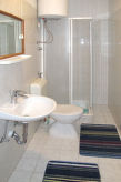 "SIB215", 3 -sobni apartman 35 m2 na 1. katu. Dnevni boravak/blagovaona s 1 kaučem za 1 osobu i TV-om sa sat. prijemnikom (plosnatim TV ekranom), DVD-om i klima uređajem. Izlaz na balkon. 1 mala soba s 1 franc. krevetom. 1 soba s 1 bračnim krevetom. Otvorena kuhinja (4 ploče za kuhanje, pećnica, toster, kuhalo za vodu, zamrzivač, el. aparat za kavu). Tuš/WC. Balkon. Balkonski namještaj. Pogled na more. Na raspolaganju: Internet (wireless LAN [WLAN], besplatan). Parking (1 automobil). Dodatna informacija: apartman za nepušače.- postrojenja