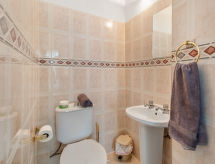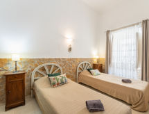 "Mille Mathias", 4 -sobna kuća u nizu 70 m2. Udobno uređena: dnevni boravak s TV-om sa sat. prijemnikom, el. grijanjem i klima uređajem. Mala dnevno-spavaća soba s 1 kaučem za 1 osobu (130 cm, dužina 185 cm), el. grijanjem i klima uređajem. 1 soba s 1 krevetom (145 cm, dužina 195 cm), el. grijanjem i klima uređajem. 1 soba s 2 kreveta (88 cm, dužina 190 cm), odv. WC-om, el. grijanjem i klima uređajem. Kuhinja (pećnica, 4 plamena za kuhanje, toster, kuhalo za vodu, mikrovalna pećnica, zamrzivač, el. aparat za kavu). Izlaz na terasu. Tuš/WC. Grijanje samo u pojedinim prostorijama. Gornji kat: (strme stepenice). Velika terasa 48 m2. Garnitura za sjedenje, ležaljke (4). Na raspolaganju: perilica za rublje, glačalo, visoka dječja stolica, dječji krevetić, sušilo za kosu. Internet (DSL/LAN, besplatan). Dodatna informacija: apartman za nepušače. Vatrogasni aparat. 42863/AL- postrojenja