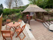 3 -sobna obiteljska kuća na 2 etaže. Prostrano i svijetlo, komforno i ukusno uređena: otvoreni dnevni boravak s TV-om, plosnatim TV ekranom i DVD-om. Otvorena kuhinja (4 ploče za kuhanje, pećnica, mikrovalna pećnica, zamrzivač) s stolom za blagovanje. Odv. WC. Grijanje. Gornji kat: 1 bračna soba s 1 bračnim krevetom. Izlaz na balkon. 1 soba s 2 kreveta. Kada/tuš/WC. Grijanje. Garnitura za sjedenje. Lijep pogled na vrt. Na raspolaganju: perilica za rublje, sušilica. Internet (wireless LAN [WLAN], besplatan). Dodatna informacija: kuća za nepušače.- Značajke smještaja