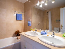 "Mirador II", 4 -sobni apartman na 1. katu, prema istoku. Komforno i lijepo uređen: dnevni boravak/blagovaona s digitalnim TV i DVD-om. Izlaz na terasu. 1 soba s 1 franc. krevetom i kadom/bidetom/WC-om. 1 soba s 2 kreveta (90 cm, dužina 200 cm). 1 soba s 2 kreveta. Kuhinja (pećnica, perilica za suđe, mikrovalna pećnica, zamrzivač). Tuš/WC. Terasa 15 m2. Garnitura za sjedenje. Vrlo lijep pogled na krajolik i golf igralište. Na raspolaganju: perilica za rublje. Internet (wireless LAN [WLAN], besplatan). Parking. Dodatna informacija: apartman za nepušače. VFT/MA/30939- Značajke smještaja