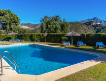 Stambeni objekt "Mirador". 15 km od centra mjesta Marbella, izvan mjesta, 7 km od centra mjesta Puerto Banús, 6 km od mora, na golf terenu, prema istoku. Za zajedničko korištenje: vrt - travnjak, bazen (80- 210 cm dubok, sezonska dostupnost: 01.May. - 31.Oct.). U kući: centralno grijanje, klimatizacija, perilica za rublje. Parking. Supermarket 4 km, restoran 5 km, pješčana plaža 6 km. Golf teren (18 rupa) 1 km. Dodatna informacija: preporučljiv vlastiti prijevoz. Susjedstvo izrazito osjetljivo na buku. Očekuje se mir i pristojno ponašanje.Interior