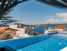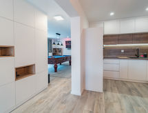Ražanj 10 km od mjesta Rogoznica: Obiteljska kuća "Mirakul", na 2 kata. Mirno, sunčano, povišeno mjesto, 80 m od mora, 80 m od plaže. Za samostalno korištenje: parcela 300 m2, bazen pravokutni, grijani (6 x 3 m, 22 m2, 155 cm dubok, sezonska dostupnost: 01.Apr. - 01.Oct.) s unutarnjim stepenicama i čišćenje bazena elektrolizom soli. Vanjski tuš, terasa (35 m2), vrtna garnitura za sjedenje. U kući: pristup internetu, biljar, perilica za rublje, sušilica. Parking (za 3 automobila) uz kuću na parceli. Trgovina 750 m, supermarket 10 km, restoran, cafe 750 m, šljunčana plaža 150 m, stjenovita plaža 80 m. Marina 10 km. Dodatna informacija: grupe mladih samo na upit. Privatni vez za barku (uz doplatu) na upit. Zračna luka 30 km od kuće. Susjedstvo izrazito osjetljivo na buku. Očekuje se mir i pristojno ponašanje.Interior