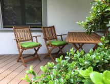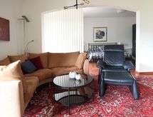 4 -sobni apartman u prizemlju. Prostrano i svijetlo, komforno i udobno uređen: otvoreni veliki dnevni boravak/blagovaona s stolom za blagovanje, TV-om sa sat. prijemnikom i plosnatim TV ekranom. Izlaz na mjesto za sjedenje u vrtu. 1 otvorena bračna soba s 1 bračnim krevetom (2 x 90 cm, dužina 200 cm). 1 soba s 2 kreveta (90 cm, dužina 200 cm). 1 soba s 1 krevetom (90 cm, dužina 200 cm). Otvorena kuhinja (pećnica, perilica za suđe, 4 staklokeramičke ploče za kuhanje, el. aparat za kavu, Doze za mašinu za kavu (Nespresso) uz doplatu). Tuš/WC. Vrtna terasa (djelomično natkrita), mala vrtna terasa. Garnitura za sjedenje. Lijep pogled na jezero, planine i krajolik. Parking br. 34 (natkrit). Dodatna informacija: apartman za nepušače.- Značajke smještaja
