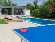 Moderna dvojna kuća na 2 kata. 2 km od centra mjesta Medulin, 800 m od centra mjesta Ližnjan, 10 km od centra mjesta Pula, 1.4 km od mora, 1.4 km od plaže. Za zajedničko korištenje: dječje igralište (tobogan, ljuljačka). Za samostalno korištenje: parcela 700 m2 - travnjak, bazen (8 x 3 m, 150 cm dubok, sezonska dostupnost: 01.May. - 01.Oct.) s unutarnjim stepenicama. Vanjski tuš, stolni tenis, terasa, vrtna garnitura za sjedenje. U kući: pristup internetu, alarmni sustav, perilica za rublje. Prilaz autom do kuće (250 m bijela cesta). Parking uz kuću. Trgovina 400 m, šljunčana plaža 1.4 km, stjenovita plaža 1.4 km. Vlasnik ne prihvaća grupe mladih. Punionica za električna vozila (na upit i uz doplatu).Interior