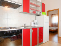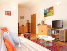Kuća s više apartmana "Mirjana". U zaseoku Brzac 13 km od centra mjesta Krk, 1 km od centra mjesta Milohnići, 2 km od centra mjesta Glavotok, 2 km od mora, 2 km od plaže. Za zajedničko korištenje: parcela 800 m2 (ograđena) - drveće, bazen pravokutni (7 x 3 m, 26 m2, 140 cm dubok, sezonska dostupnost: 04.Apr. - 06.Nov.). Terasa, vrtna garnitura za sjedenje, roštilj. U kući: pristup internetu. Parking na parceli. Trgovina 1 km, šljunčana plaža 2 km. Dodatna informacija: zračna luka 29 km od kuće.Interior