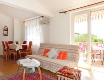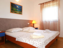 "Mirjana (KRK357)", 3 -sobni apartman 60 m2 na 1. katu. Dnevni boravak/blagovaona s 1 kaučem za 2 osobe (140 cm, dužina 200 cm), TV-om sa sat. prijemnikom i klima uređajem. Izlaz na balkon. 1 soba s 1 franc. krevetom (180 cm, dužina 200 cm). 1 soba s 2 kreveta (90 cm, dužina 200 cm). Otvorena kuhinja (4 ploče za kuhanje, pećnica, zamrzivač, el. aparat za kavu). Izlaz na balkon. Tuš/WC. Klima uređaj (uz doplatu). Balkon 18 m2. Balkonski namještaj, ležaljke. Na raspolaganju: Internet (wireless LAN [WLAN], besplatan). Dodatna informacija: kuća za nepušače. 1 kućni ljubimac / pas dozvoljen.- postrojenja