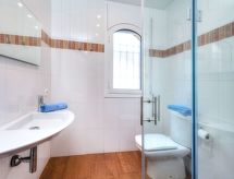 "Miro", 5 -sobna kuća 200 m2. Vrlo svrsishodno i komforno uređena: dnevni boravak/blagovaona s stolom za blagovanje i digitalnim TV. Izlaz na mjesto za sjedenje u vrtu, na bazen. 1 bračna soba s 2 kreveta (90 cm, dužina 190 cm). Velika kuhinja (pećnica, perilica za suđe, 4 staklokeramičke ploče za kuhanje, mikrovalna pećnica, zamrzivač, el. aparat za kavu). Izlaz na mjesto za sjedenje u vrtu. Tuš/WC. Bez grijanja. Gornji kat: 1 bračna soba s 2 kreveta (90 cm, dužina 190 cm). 1 bračna soba s 1 franc. krevetom (135 cm, dužina 190 cm) s 1 franc. krevetom (150 cm, dužina 190 cm). Kada/WC, tuš/bidet/WC. Garnitura za sjedenje, vrtni roštilj, ležaljke, lođa. Pogled na mjesto. Na raspolaganju: perilica za rublje, glačalo, visoka dječja stolica, dječji krevetić do 2 godine, sušilo za kosu. Internet (wireless LAN [WLAN], besplatan). Prikladno za obitelji. HUTG013607- Aktivnosti u blizini