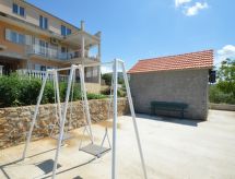 2 -sobni apartman 45 m2, u povišenom prizemlju, prema jugu. Dnevni boravak/blagovaona s 1 kaučem za 2 osobe (160 cm, dužina 190 cm), TV-om sa sat. prijemnikom (plosnatim TV ekranom), klima uređajem. Izlaz na terasu. 1 soba s 1 franc. krevetom (160 cm, dužina 190 cm). Kuhinja (4 ploče za kuhanje, pećnica, zamrzivač, el. aparat za kavu). Tuš/WC. Klima uređaj (uz doplatu). Terasa 13 m2 (djelomično natkrita). Garnitura za sjedenje. Na raspolaganju: perilica za rublje. Internet (wireless LAN [WLAN], besplatan).- postrojenja