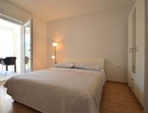 1 -sobni apartman 25 m2, u povišenom prizemlju, prema jugu. Studio s 1 franc. krevetom (160 cm, dužina 200 cm), TV-om sa sat. prijemnikom (plosnatim TV ekranom), klima uređajem. Izlaz na terasu. Otvorena kuhinja (2 staklokeramičke ploče za kuhanje, mikrovalna pećnica, zamrzivač, el. aparat za kavu) s stolom za blagovanje. Tuš/WC. Klima uređaj (uz doplatu). Terasa 10 m2 (natkrita). Garnitura za sjedenje. Na raspolaganju: perilica za rublje. Internet (wireless LAN [WLAN], besplatan).- postrojenja