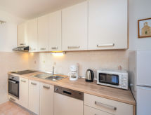 2 -sobni apartman 55 m2, u prizemlju. Lijepo i udobno uređen: dnevni boravak/blagovaona 25 m2 s 1 kaučem za 2 osobe (130 cm, dužina 190 cm), TV-om sa sat. prijemnikom (plosnatim TV ekranom), klima uređajem. Izlaz na terasu. 1 soba s 1 bračnim krevetom (2 x 90 cm, dužina 190 cm). Otvorena kuhinja (pećnica, perilica za suđe, 4 staklokeramičke ploče za kuhanje, mikrovalna pećnica, zamrzivač, el. aparat za kavu). Tuš/WC. Grijanje toplim zrakom. Terasa 16 m2 (natkrita). Garnitura za sjedenje. Na raspolaganju: perilica za rublje. Internet (wireless LAN [WLAN], besplatan). 1 kućni ljubimac / pas dozvoljen.- postrojenja