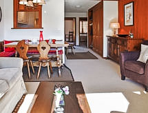 Residence "Mondzeu". U samom mjestu 150 m od centra mjesta Verbier, mirno, sunčano mjesto, odlična pozicija: u samom centru, a ipak mirno, u slijepoj ulici, prema jugu. U kući: dizalo, spremište za skije, centralno grijanje. Prilaz autom do kuće. Zajednička garaža br. 258 javni parking 1 km. Trgovina 150 m, supermarket 400 m, restoran, bar, pekara, cafe 150 m, autobusna postaja "L'Ermitage" 150 m, natkriveni bazen 1 km. Golf teren (18 rupa) 2.9 km, tenis 1 km, jahanje konja 1 km, sportski centar 1 km, gondola 1 km, skijaške žičare 500 m, postaja ski busa 150 m, škola skijanja 550 m, dječji vrtić na snijegu 800 m, klizalište 1 km, dječje igralište 200 m. Gratis skibus za skijalište Médran 500m, Savoleyres 1km i Carrefour 2.9km. Dodatna informacija: 150 m od kuće.Interior