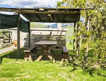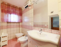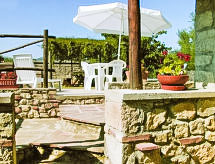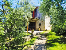 2 -sobna kuća 55 m2 na 2 etaže, u prizemlju. Rustikalno i udobno uređena: kuhinja/dn. boravak (4 ploče za kuhanje, pećnica, perilica za suđe, kuhalo za vodu, mikrovalna pećnica, el. aparat za kavu, Doze za mašinu za kavu (Nespresso)) s stolom za blagovanje, otvorenim kaminom i TV-om sa sat. prijemnikom. Izlaz na terasu. Tuš/bidet/WC. El. grijanje. Gornji kat: (kružne stepenice) 1 velika soba s 1 krevetom, 1 bračnim krevetom i klima uređajem. Izlaz na balkon. Terasa, veliki vrt, sjenica. Garnitura za sjedenje, vrtni roštilj, ostava. Na raspolaganju: perilica za rublje, drvo (uz doplatu). Internet (wireless LAN [WLAN], uz doplatu). Parking (ograđen) uz kuću. 1 kućni ljubimac / pas dozvoljen.- postrojenja