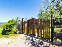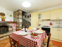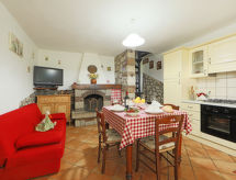 Rustikalna ladanjska kuća "Montecalvo", godina izgradnje 1820, renovirana. 3 km od centra mjesta Roccastrada, 30 km od centra mjesta Follonica, 45 km od centra mjesta Siena, uz cestu, u zelenom. Za samostalno korištenje: vrt 1'500 m2 (ograđen). Vanjski tuš, sjenica, terasa, vrtna garnitura za sjedenje, roštilj, dječje igralište (ljuljačka). U kući: wireless LAN [WLAN] (sve uz doplatu), perilica za rublje. Čišćenje apartmana moguće (uz doplatu). Prilaz autom do kuće. Parking na parceli. Trgovina 3 km, restoran 100 m, autobusna postaja 3 km, željeznička postaja "Roccastrada Scalo" 7 km. Golf teren 30 km, tenis 3 km, jahanje konja 30 km.Interior