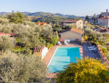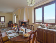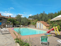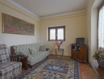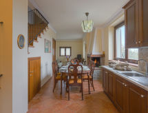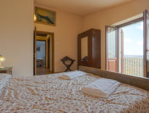"Montechioccioli", 3 -sobna polovica dvojne kuće 70 m2 na 2 etaže, u prizemlju. Objekt pogodan za 4 odraslih + 2 djece. Prostrano, renovirana, rustikalno i udobno uređena: dnevno-spavaća soba s 1 kaučem za 2 osobe, otvorenim kaminom, stolom za blagovanje i TV-om sa sat. prijemnikom. Kuhinjska niša (pećnica, perilica za suđe, 4 plamena za kuhanje, mikrovalna pećnica, el. aparat za kavu). Odv. WC. Gornji kat: 1 bračna soba. Izlaz na balkon. 1 soba s 2 kreveta (80 cm). Tuš/bidet/WC. Grijanje na plin (uz doplatu). Prirodni kameni pod. Balkon, terasa. Garnitura za sjedenje, vrtni roštilj, ležaljke. Lijep panoramski pogled na krajolik. Na raspolaganju: visoka dječja stolica, dječji krevetić do 2 godine. Internet (wireless LAN [WLAN], besplatan). Parking (2 automobila). Dodatna informacija: prikladno za obitelji. Apartman za nepušače. 1 mali kućni ljubimac / pas dozvoljen. Vlastiti ulaz.- postrojenja
