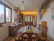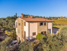 Ugodna, rustikalna kuća s 3 apartmana "Montechioccioli", okružena vinogradima. 3 apartmana u kući. U zaseoku Rietine 4 km od centra mjesta Gaiole in Chianti, 12 km od centra mjesta Radda in Chianti, 40 km od centra mjesta Siena. Za zajedničko korištenje: terasasti vrt, 1'000 m2 - bilje i drveće, prirodni vrt, bazen (12 x 6 m, 170 cm dubok, sezonska dostupnost: 02.May. - 03.Oct.). Tuš/WC uz bazen, terasa, roštilj. U kući: perilica za rublje (za zajedničko korištenje). Parking na parceli. Trgovina živežnim namirnicama 4 km, supermarket 15 km. Objekt pogodan za 12 odraslih 6 grupe mladih samo na upit. Prodaja domaćih poljoprivrednih proizvoda. Dodatna informacija: vlasnik živi na istoj parceli.Interior