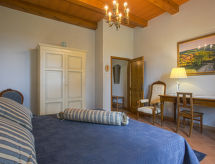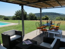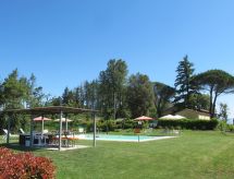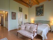 "Montelucci", 9 -sobna vila 300 m2 na 2 etaže. Prostrano, vrlo komforno i ukusno uređena: blagovaona. Izlaz u vrt. 2 bračne sobe. Velika kuhinja (pećnica, perilica za suđe, 5 plamena za kuhanje, toster, mikrovalna pećnica, zamrzivač, el. aparat za kavu, Doze za mašinu za kavu (Nespresso) uz doplatu) s stolom za blagovanje. Izlaz na terasu, na mjesto za sjedenje u vrtu. 2 x tuš/bidet/WC. Gornji kat: 1 bračna soba. 1 soba s 2 kreveta (80 cm). 1 soba s 2 kreveta (80 cm), tušem/bidetom/WC-om. 1 soba s 1 bračnim krevetom (160 cm), tušem/bidetom/WC-om. 1 soba s 1 bračnim krevetom (170 cm), tušem/WC-om. Veliki dnevni boravak s otvorenim kaminom i TV-om sa sat. prijemnikom (plosnatim TV ekranom). Tuš/bidet/WC. Grijanje. Komforno uređeno u ladanjskom stilu. 2 terase, sjenica. Garnitura za sjedenje, vrtni roštilj (prijenosni), ležaljke (14). Prekrasan panoramski pogled na krajolik. Na raspolaganju: perilica za rublje, glačalo, visoka dječja stolica, dječji krevetić. Internet (wireless LAN [WLAN], besplatan). Dodatna informacija: kuća za nepušače. 1 kućni ljubimac / pas dozvoljen. U slučaju boravka manjeg broja gostiju od maksimalnog kapaciteta objekta, neće biti na raspolaganju sve spavaće sobe. U slučaju boravka manjeg broja gostiju od maksimalnog kapaciteta objekta, jedna etaža objekta neće biti na raspolaganju. Na licu mjesta nema naplate dodatnih troškova, osim boravišne pristojbe. Posteljina, ručnici, završno čišćenje i troškovi energije su uključeni u cijenu.- postrojenja
